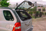 Las manijas, también del color de la carrocerÃa, permiten abrir las puertas tirando de ellas. Estas tienen apertura y cierre por comando a distancia. La Nueva Sportage cuenta con una amplia superficie vidriada que permite una muy buena visibilidad; no hemos detectado mayores zonas ciegas. También son amplios los dos espejos retrovisores exteriores, rebatibles manualmente y regulables electrónicamente, pintados del mismo color de la carrocerÃa, y para armonizar todo ello cuenta con bonitas llantas de aleación liviana de cinco rayos y 16″ de diámetro que montan cubiertas Bridgestone Turanza ER30 – 235 / 60 R16.