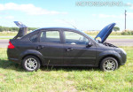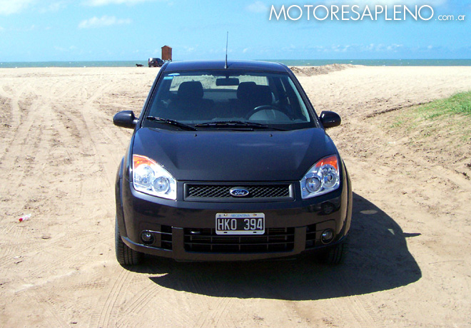 Esta versión del Fiesta 1.6 tope de gama tiene notorios cambios en su frente, donde la renovación es total respecto de su antecesor. De esta manera, el lanzado capot tiene un nuevo diseño, con nervaduras que le dan solidez, al igual que las ópticas de policarbonato -de forma de trapezoide asimétrico- y la pequeña parrilla rectangular en color negro con el logo de Ford en el centro. Lo mismo ocurre con el paragolpes envolvente, que tiene generosas entradas de aire y faros de profundidad en sus extremos.