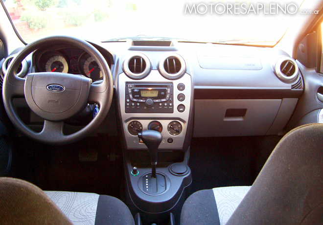 El interior del Fiesta Max también ha sufrido cambios, en especial en lo que respecta al tablero y la plancha de instrumentos. Los cuatro relojes son de nuevo diseño, cuya señalización es por aguja; sobre la izquierda está ubicado el cuenta-revoluciones que, a su vez, incorpora luces testigos de presión de aceite del motor, carga de la batería, señal de activación del «Overdrive» (para el vehículo equipado con caja automática como en este caso), frenos y encendido de luces. Además, tiene un display digital con el odómetro parcial y total y el reloj horario, pero no cuenta con computadora de a bordo. Por su parte, sobre la derecha está el cuentakilómetros que también posee indicadores luminosos, como el control del ABS, del sistema de inmovilización del motor y de advertencia de la transmisión automática, entre otros. Entre ambos instrumentos se pueden apreciar el marcador del nivel de combustible y el que señala la temperatura del motor.