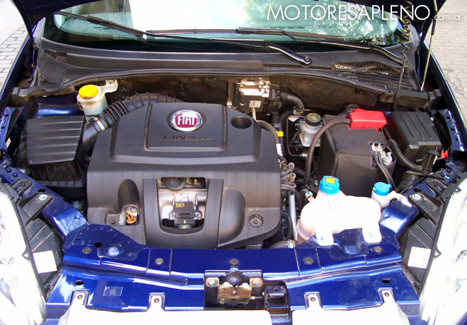 El motor que impulsa al Fiat Linea es un naftero de 4 cilindros en lÃnea ubicado en posición delantera transversal, de 1.9 L (1.839cc), doble árbol de levas a la cabeza y 16 válvulas, con una relación de compresión de 11,5:1 y una potencia de 130 CV a 5.750 rpm. El encendido es electrónico digital, con inyección electrónica multipunto secuencial marca Magneti Marelli. Tiene un Par máximo (Par es la fuerza que es capaz de ejercer un motor en cada giro) de 18,1 kgm a 4.500 rpm. que lo hace muy elástico y le permite realizar efectivas recuperaciones aun en bajas revoluciones de motor. Ello se traduce en excelentes cualidades dinámicas, aunque lo notamos algo rumoroso cuando trepa por sobre las 3.500/4.000 rpm.