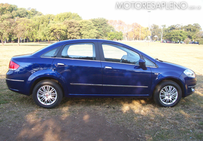 En los laterales del Fiat Linea se aprecia claramente su alta cintura que se va elevando a medida que se desplaza hacia la parte posterior, como asà también una nervadura que acompaña esa lÃnea y recorre al vehÃculo hasta el sector trasero. Además, resaltan las manijas de las puertas cromadas; sus espejos exteriores color carrocerÃa (se rebaten manualmente) y sus remarcados pasos de ruedas que le dan elegancia a todo el conjunto.