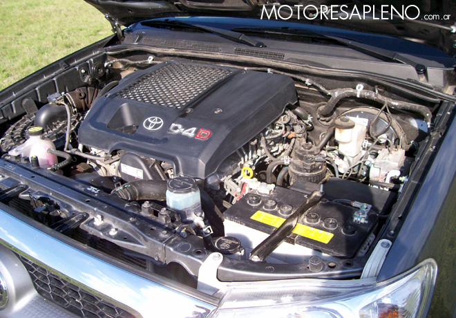 El motor diesel no ha sufrido modificaciones, confirmando sus bondades en cuanto a rendimiento y confiabilidad que le permite a la Hilux desempeñarse con notable agilidad, ayudado por la correcta relación y precisión de la caja manual de cinco marchas.