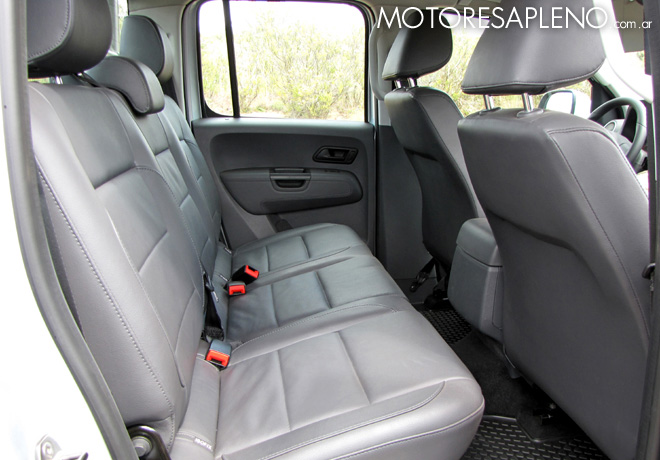 El habitáculo de la Amarok es muy amplio y acogedor; diríamos que está a la altura de vehículos de gama media/alta en cuanto a confort, equipamiento y calidad de los materiales utilizados. Puede transportar muy cómodamente a 5 pasajeros por las generosas dimensiones de la cabina. El ascenso y descenso se hace con facilidad por al amplio ángulo de apertura de las puertas.