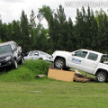 Cuando hicimos el circuito off road pudimos comprobar la facilidad de manejo y eficiencia para trepar y descender por pendientes tan pronunciadas que llegaban hasta los 45º de inclinación, ya sea con piso firme o tierra suelta. Por otra parte, también se comportó correctamente al transitar por laderas de 30º, realizar vadeos (tiene una capacidad de hasta 50 cm. de profundidad de agua) y recorrer las clásicas huellas del campo. Además pudimos comprobar la eficiencia del frenado sobre estas irregulares superficies. Con un ángulo de inclinación de 28 grados adelante y 23,6º atrás se desplaza fácilmente por terrenos escarpados y profundas zanjas, y gracias a un ángulo de rampa de 23º puede superar pendientes del 100% con un ángulo de inclinación de 45º con plena carga.