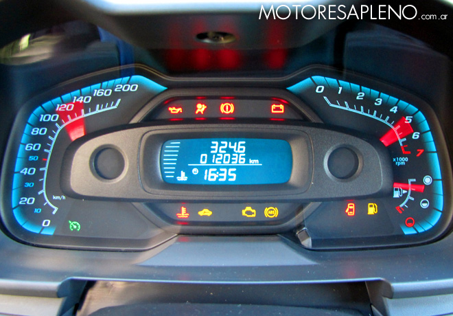El velocímetro está ubicado sobre la izquierda y el cuentarrevoluciones y el indicador del nivel de combustible del lado derecho, y entre ellos se observa el marcador de la temperatura del motor -mediante barras digitales- y la computadora de a bordo con seis funciones, con la hora y temperatura exterior; odómetro total y parcial, y distintas informaciones como la velocidad media, el consumo medio y total de combustible, consumo del viaje, mensajes de advertencia y servicio de mantenimiento, entre otros.
