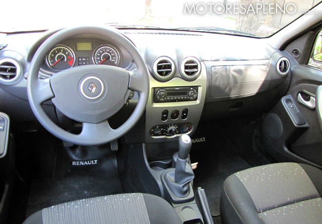 Respecto del tablero, sobre la izquierda se encuentra el canalizador direccional del climatizador y también la boca del desempañador de los cristales laterales. En el centro está dispuesto el desempañador del parabrisas y otros dos aireadores, y a continuación está situado el equipo de audio AM/FM con CD, Mp3 y entrada auxiliar. Luego se encuentran los mandos del sistema de aire acondicionado y calefacción, y sobre la derecha el restante orientador direccional y la otra boca del desempañador, el airbag del pasajero y la guantera (de generosas dimensiones). En la consola central, entre las dos butacas, encontramos en cada extremo espacios porta-objetos (con cenicero removible), la palanca de cambios, el freno de mano y el encendedor.