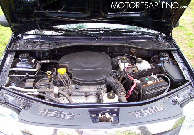 El Logan tiene un impulsor dispuesto en forma transversal de 1.6L (1.598 cm3) -8 válvulas- que eroga 90 CV de potencia a 5.000 rpm., con un par motor de 13,1 kgm a 3.000 rpm. e inyección multipunto. Hay que destacar que tiene chapón protector del cárter.