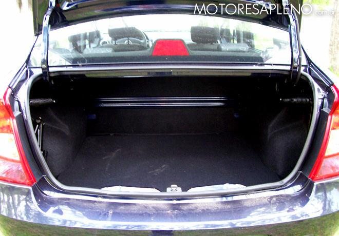 El baúl es muy amplio (510 litros), uno de los mejores en su categorÃa sino el mejor, donde se pueden cargar sin problemas muchos bultos por el piso plano y la amplitud de la boca de carga. Dentro de él, en el compartimiento debajo de la alfombra, se encuentra la rueda de auxilio con llanta de chapa y neumático de la misma medida de los que están en rodaje, y los elementos para su recambio.