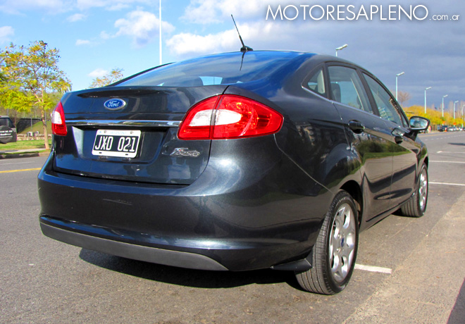 El sector trasero, obviamente, es el que mayores modificaciones sufrió. La tapa del baúl incorpora un pequeño deflector, observándose el óvalo de Ford y luego un inserto cromado. La placa de identificación está en el centro, y sobre la parte derecha se aprecia el monograma del modelo (Fiesta). Por último, los faroles y el paragolpes han sido rediseñados para adecuarlos al tercer volumen.