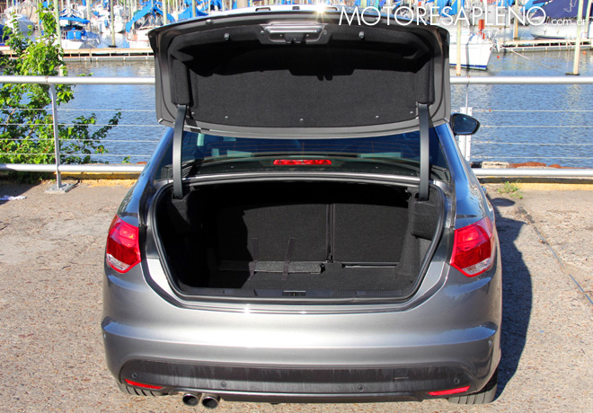 El nuevo C4 Lounge 1.6i THP 163 AT6 Exclusive Pack Select (el más alto de la gama) que probamos tiene un completo equipamiento de Confort y Seguridad de Serie. Podemos citar el aire acondicionado y guantera refrigerada, con luz; climatizador automático bi-zona personalizable, con función «Restore»; dirección de asistencia variable; encendido automático de luces / limpiaparabrisas; espejo retrovisor interno electro-crómico; espejos exteriores eléctricos, rebatibles; levanta-vidrios delanteros y traseros eléctricos con antipinzamiento y one touch; limitador y regulador de velocidad (programable); sensores de estacionamiento delantero y trasero sonoro visual y cámara de retroceso; radio CD MP3 / AUX / USB / Bluetooth con mandos al volante; sistema de espacialización 3D del Sonido Arkamys® y doble antena; sistema de navegación GPS MyWay con pantalla LCD de 7″ integrada; toma 12v; tablero de instrumentos con función Black Panel con colores personalizables; apoya-brazos central delantero regulable en altura y espacio guarda-objetos; apoya-brazos central trasero con posa-vasos; asiento del conductor regulable en altura; asiento trasero rebatible 1/3 – 2/3; asientos tapizados en cuero Zina, cuero metalizado y cuero perforado; volante regulable en altura y profundidad; acceso manos libres (apertura de puertas y encendido sin llave -sistema ADML- combinado con apertura y cierre de cristales y techo desde la llave o desde la manija de las puertas delanteras) que percibe la presencia del conductor y automáticamente se activa la apertura de puertas y, si se desea, el descenso de los cristales; encendido con botón Start/Stop; cierre centralizado de puertas y baúl con mando a distancia; cierre automático de puertas en rodaje; apertura de baúl y tanque de combustible desde el interior del vehÃculo; parabrisas acústico; panel de instrumentos con iluminación y matriz LCD personalizables, y techo solar eléctrico (Opcional-Pack Select).
