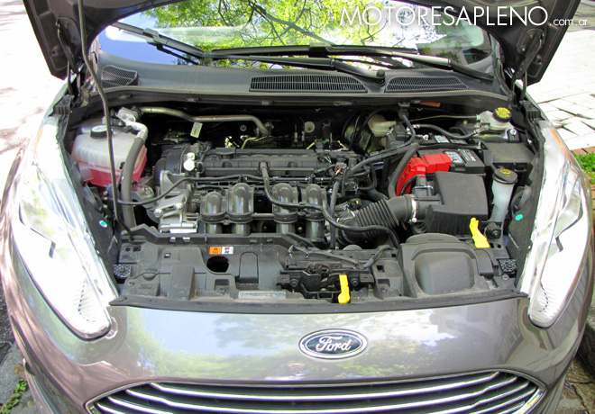 El motor del Fiesta está ubicado en posición delantera transversal. Es un naftero de cuatro cilindros en lÃnea 1.6L Sigma Ti-VCT de 16 válvulas que eroga una potencia de 120 CV a 6.000 rpm. El torque es de 152 Nm a 4.200 rpm, mientras que la alimentación es electrónica multipunto.