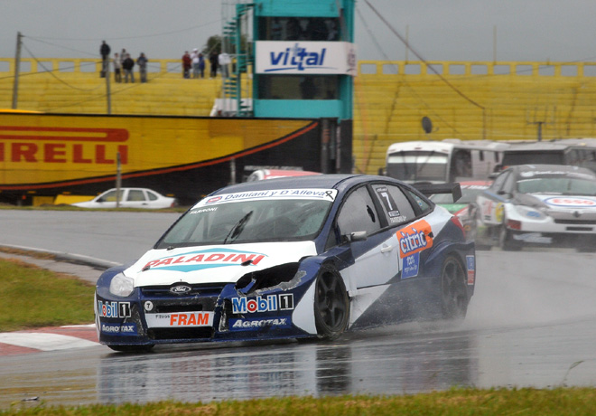 En la largada de la Final Collino tomó la punta, pero rápidamente se vio sorprendido por la lluvia que comenzaba a caer en el circuito cordobés y perdía la posición que heredó Gerbaldo (Ford Focus).