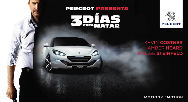 Peugeot es sponsor oficial de la película “3 días para matar” -un thriller protagonizado por Kevin Costner, escrito y dirigido por Luc Besson-, donde los automóviles de la marca francesa también son grandes protagonistas de la historia. El film se estrenará en Argentina el 1º de mayo.