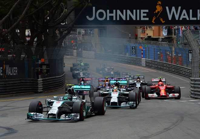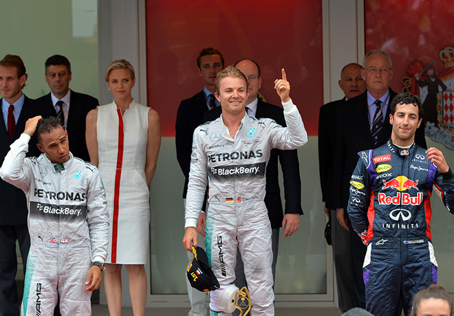 Y otra vez esta carrea no fue la excepción, ya que Nico Rosberg, quien ayer habÃa logrado la pole position, venció de semáforo a bandera de cuadros, siempre acosado de cerca por su compañero Lewis Hamilton, a la postre su escolta. Esta es la segunda victoria consecutiva de Rosberg en el principado, que le permite ser nuevamente el lÃder del campeonato.