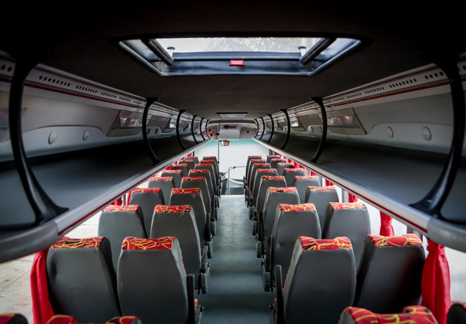 La carrocería cuenta con 45 asientos semi-reclinables, con cinturón de seguridad, apoyabrazos en ambos lados y tapizado de pana –con gran variedad de opciones-. En el plano de la mecánica cabe destacar que la disposición general de la estructura del vehículo otorga un fácil acceso al motor, permitiendo reducir los tiempos y la complejidad de los trabajos de mantenimiento.