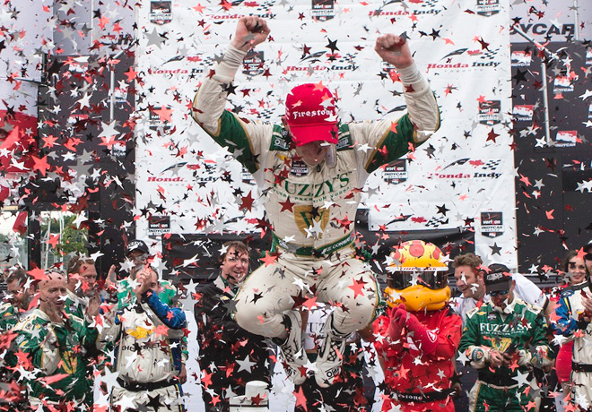 Mike Conway obtuvo su segunda victoria de la temporada en la competencia dos del fin de semana disputada en el callejero de Toronto, en Canadá, sobre 56 vueltas. Segundo, a 3”542, terminó Tony Kanaan, y tercero fue Will Power.