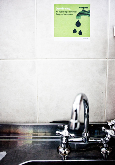 Con todos los edificios ambientados acorde a la campaña, hay consejos sustentables que informan a los empleados sobre los modos de colaborar con el medio ambiente, afiches que alertan sobre el derroche de agua, electricidad y papel en espacios comunes, oficinas y salas de reunión. También las líneas de producción del Centro Industrial Juan Manuel Fangio fueron especialmente acondicionadas para que los mensajes de concientización de la campaña lleguen a todos.