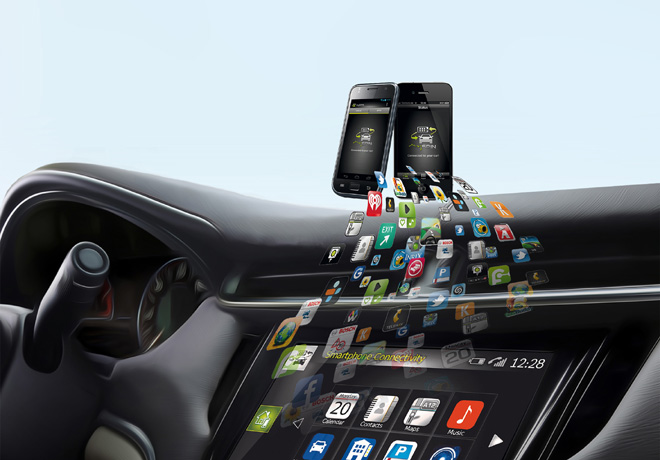La conectividad es una mega-tendencia en la industria automotriz debido a que la digitalización seduce cada vez a un mayor número de personas. Una de las aplicaciones en las que están trabajando los ingenieros de Bosch es el sistema MySpin, con el que se pueden integrar perfectamente los smartphones, iPhone y Android en los vehículos, de forma que la pantalla del dispositivo móvil será visible en el monitor central del vehículo. Las Apps se pueden utilizar así en el vehículo de forma mucho más simple, segura y confortable.