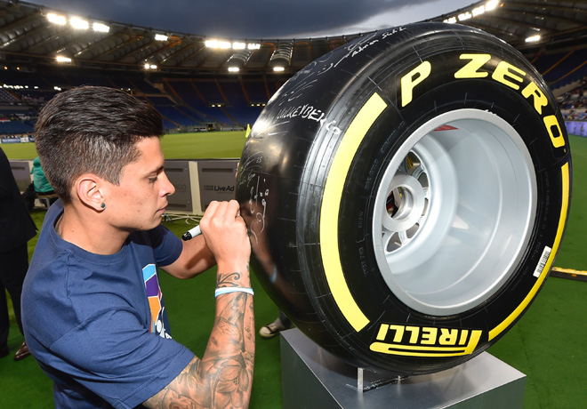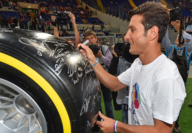 Antes del partido realizado en el Estadio OlÃmpico de Roma, los neumáticos fueron firmados por algunos de los campeones clásicos, incluyendo a Diego Maradona; Ezequiel Lavezzi; Andrea Pirlo; Andriy Shevchenko; Alessandro Del Piero; Luigi Buffon; Ivan Zamorano; Samuel Eto’o y Javier Zanetti.