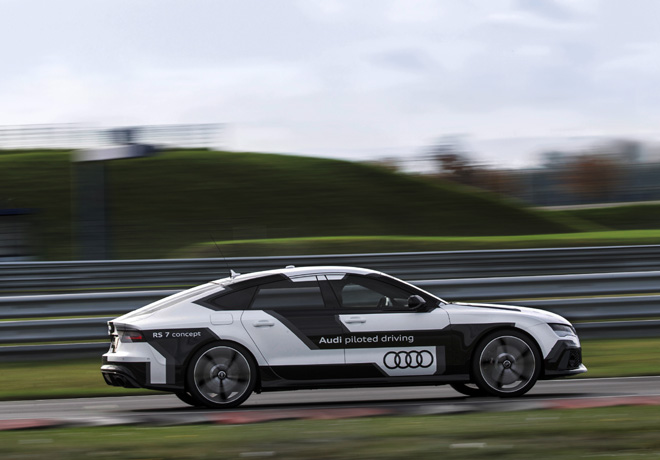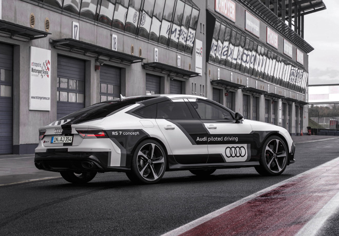 Audi develará el RS 7 piloted driving concept este fin de semana en Hockenheim. Con las últimas novedades tecnológicas de la marca de los cuatro anillos a bordo, el primer auto deportivo pilotado automáticamente, se impulsará a sus límites físicos con precisión milimétrica.