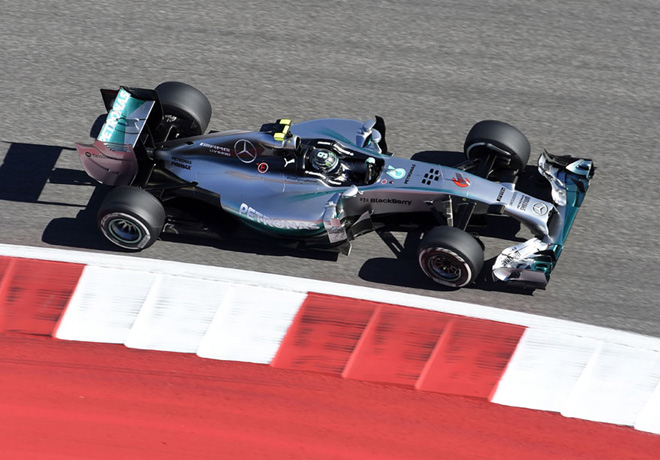 Con solamente 18 autos en pista ya que no se presentaron los equipos Marussia y Caterham por problemas persupuestarios, se disputó la Clasificación para el Gran Premio de Estados Unidos. Y como lo vienen demostrando los Mercedes desde hace tiempo no hubo sorpresas, porque volvieron a ocupar las dos mejores posiciones.
