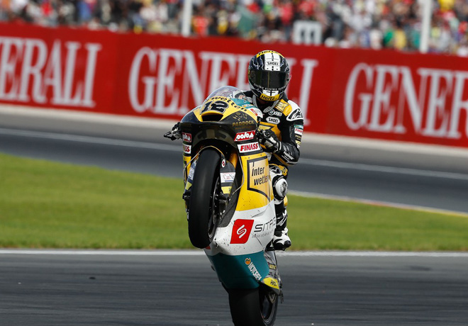 Thomas Luthi (Interwetten Sitag) se impuso en la última carrera de la temporada en Valencia tras un prolongado duelo con Tito Rabat, al que superó en la lÃnea de meta después de que el campeón del mundo ralentizara su velocidad en la recta de llegada. Johann Zarco ha completado el podio.