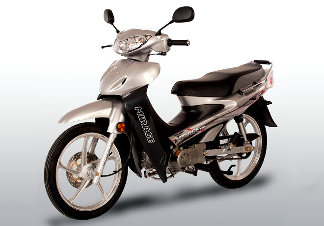 La Mirage 110 R2 ofrece un perfecto equilibrio entre calidad y economía de uso. Posee un probado motor de 110 centímetros cúbicos, una caja de cambios de cuatro velocidades, Arranque eléctrico, Llantas de aleación y freno delantero a disco. Adicionalmente existe una versión con llantas de rayos y frenos a tambor.