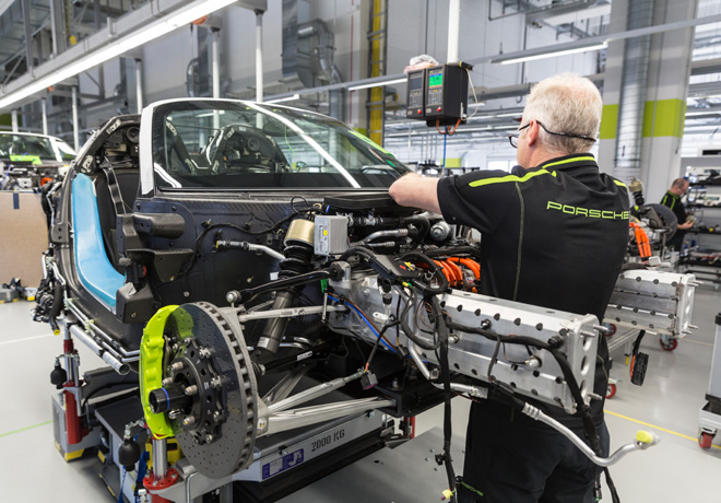 Y en segundo lugar, con su exclusivo sistema de producción, con el cual Porsche está desarrollando una nueva metodología en su taller de 4.000 metros cuadrados en el cual 100 empleados meticulosamente seleccionados ensamblan los vehículos a mano.