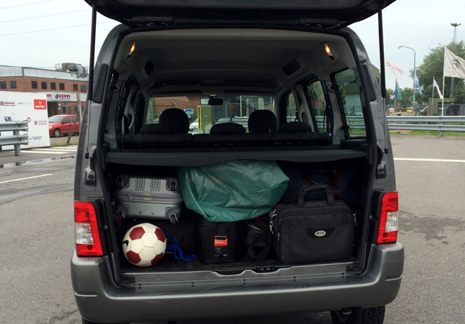 Lo correcto es rebatir los asientos, colocar la bicicleta y anclarla a los ganchos del interior con un malacate y cinta. Ningún elemento que se transporte tiene que exceder las dimensiones del vehÃculo; las puertas laterales y la quinta puerta o portón trasero deben cerrar siempre sin realizar un esfuerzo extra.