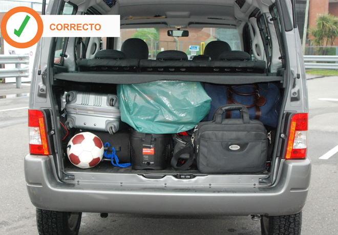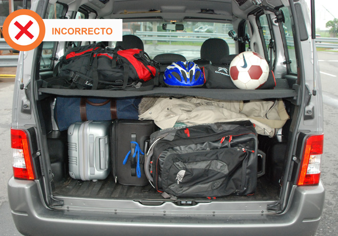 Al momento de llevar equipaje es importante considerar algunos aspectos. Cargar los elementos más pesados en la parte más cercana al piso del baúl contra el asiento trasero y no llevar elementos en el habitáculo porque ante un choque o maniobra brusca éstos pueden lastimar a los ocupantes. No se sugiere llevar elementos en el techo porque modifican las condiciones aerodinámicas y la estabilidad lateral del vehÃculo.