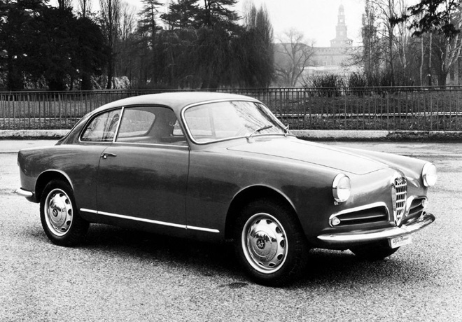 Fue el primer Alfa Romeo con nombre propio y de mujer. Presentado al público en 1954 en la versión coupé Sprint, con una lÃnea juvenil y dinámica diseñada por Bertone, fue un coche de éxito seguro.