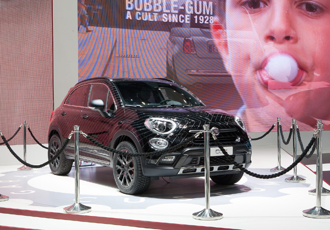 Inspirándose en el signo «X» del nuevo crossover Fiat, el stand montado en Ginebra acoge al gran público con elegancia y gusto italianos. En el centro se exponen algunos ejemplares del 500X rodeado de otros vehículos – 500, Panda, Doblò, 500L y Freemont – casi en un simbólico abrazo al último recién nacido de la marca Fiat.