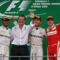Un error en la estrategia del equipo alemán al volver a utilizar neumáticos duros en lugar de los blandos en la tercera parada de Hamilton, no le permitió al campeón recuperar la primera posición y finalmente debió conformarse con ser el escolta de Vettel, a 8”569 de diferencia. Tercero quedó Rosberg, a 12”310, y cuarto Kimi Räikkönen con la restante Ferrari, a 53”822 de su compañero de equipo.