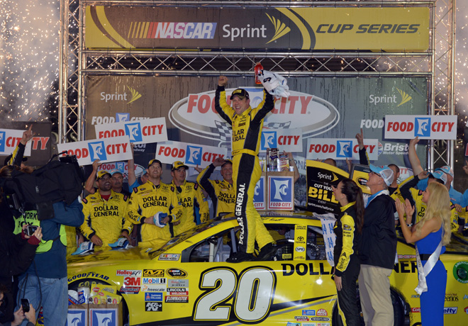 Matt Kenseth arrancó desde la pole y aunque sólo lideró 47 vueltas, ganó la Food City 500 en una jornada que duró casi 10 horas en el Bristol Motor Speedway, debido al retraso por lluvia antes de la carrera; luego una interrupción de casi cuatro horas también por lluvia, y una interminable secuencia de accidentes y banderas amarillas.