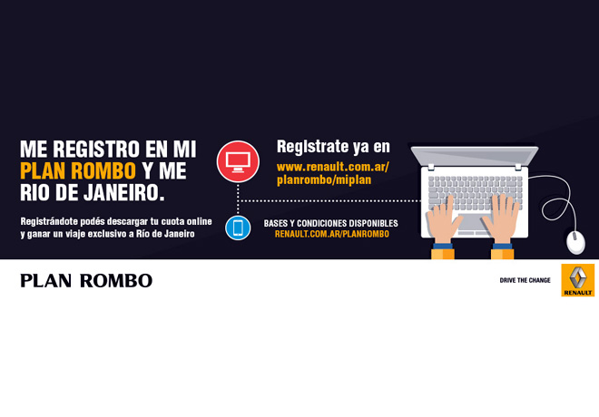 Los accesos desde www.renault.com.ar para registrarse y comenzar a disfrutar de los beneficios son sencillos y directos: www.renault.com.ar/planrombo/miplan o bien dirigiéndose a la sección de Plan Rombo y accediendo a la opción «Mi Plan Rombo».