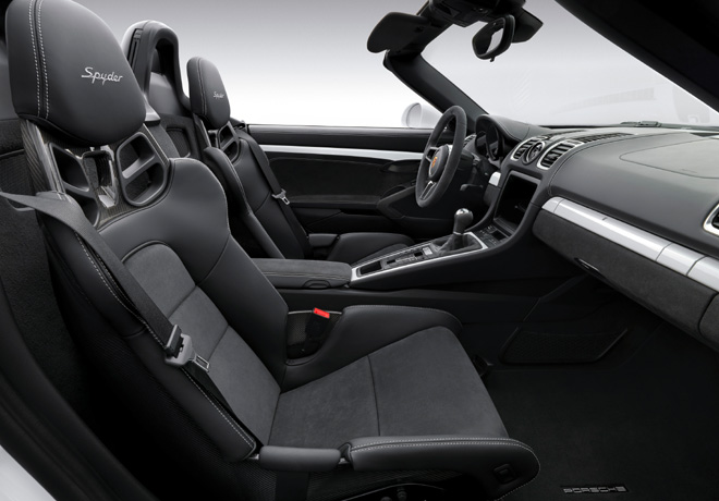 Más que en cualquier otro Boxster, el interior del nuevo modelo más alto de la gama ofrece un ambiente que emana un sentimiento de puro placer de conducción. El conductor y el pasajero se sientan en livianos asientos de butaca con amplios soportes laterales, mientras que el nuevo volante con un diámetro de 360 milÃmetros contribuye a garantizar que el roadster de motor central pueda ser conducido de manera precisa y con gran agilidad.