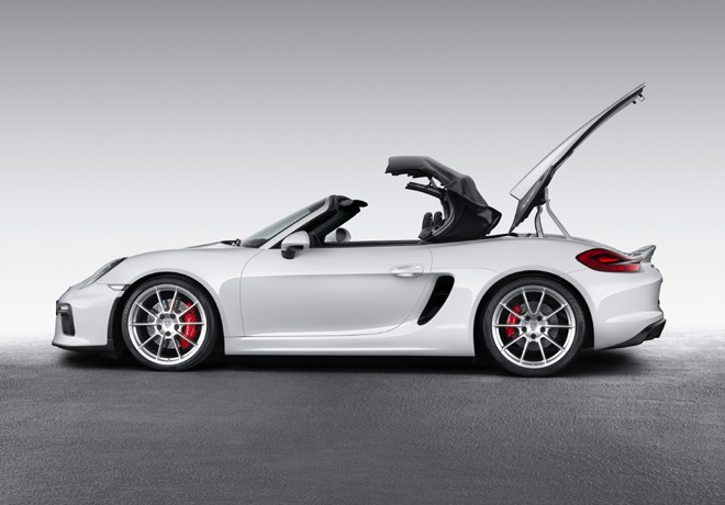 Porsche inicia la temporada «convertible» de 2015 con la presentación mundial del nuevo Boxster Spyder. Este purista auto deportivo hará su debut en el Salón Internacional del Automóvil de Nueva York. El nuevo modelo ocupa el lugar más alto de la serie de biplazas y retiene el carácter independentista del Spyder anterior, el cual ya tiene un estatus de culto. Por ejemplo, el clásico techo de lona aún se abre y se cierra a mano, y el auto deportivo únicamente está disponible con transmisión manual.