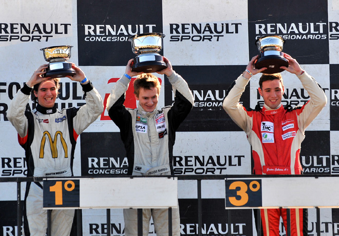 Emiliano Marino (Werner Competición) venció en la carrera dominical de Fórmula Renault 2,0 que se disputó hoy en el autódromo Parque Ciudad de RÃo Cuarto, Córdoba, y logró asà su primera victoria en la especialidad. Segundo finalizó MartÃn Moggia (Litoral Group) y tercero Gastón Cabrera (LRD).