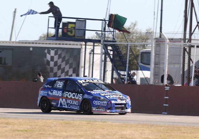 MatÃas Machuca terminó segundo con otro Focus, mientras que el lÃder del torneo, Guillermo Ortelli, fue tercero con el Cruze. Jerónimo Teti (Cruze); Esteban Tuero y Ezequiel Bosio, ambos con Focus, MatÃas Rossi (C4); Leandro Carducci (Seat); Mariano PernÃa (Cruze) y Marcelo González (Peugeot 307) completaron el top 10.