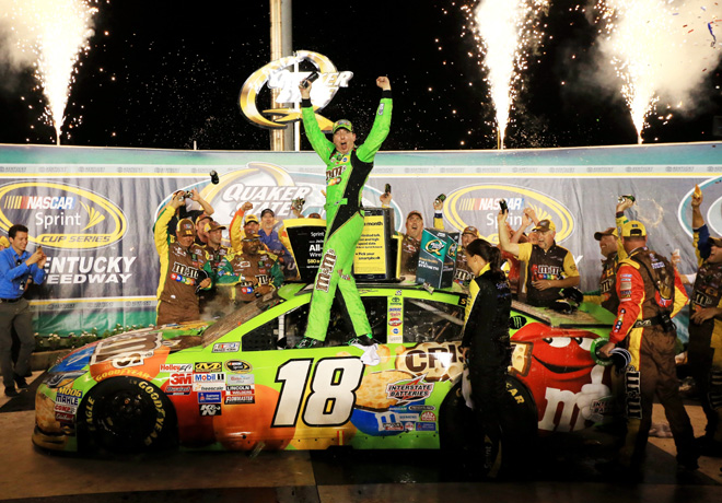 Kyle Busch aprovechó al máximo el nuevo paquete aerodinámico de la NASCAR Sprint Cup para lograr la victoria en la Quaker State 400 en el Kentucky Speedway, con lo que dio otro importante paso hacia su clasificación en el Chase por la NASCAR Sprint Cup.