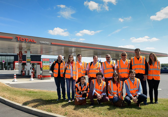 Dentro del programa de actividades, la primera jornada consistió en la visita a una estación de servicio modelo de TOTAL (FERRIERES) ubicada a unos 20 kilómetros de París. A lo largo de dicha visita, los invitados conocieron que TOTAL posee más de 15.000 modernas estaciones de servicio en el mundo, a través de las cuales vende 30 billones de litros de combustible por año, tiene un promedio de 4 millones de clientes por día, y realiza más de 50.000 lavados de autos diarios sólo en Europa. La oferta gastronómica de las estaciones de servicio TOTAL es reconocida por su gran calidad y variedad de productos, y al mismo tiempo poseen una variedad de soluciones innovadores, tales como el pago a través de celulares y aplicaciones móviles orientadas al cliente, con una interfaz amigable.