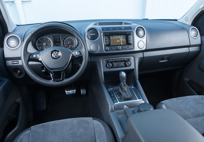 En su interior, la nueva serie especial de Amarok ofrece tapizados “Alcántara», pedalera de aluminio (sólo en versión automática), alfombras “Ultimate”, espejos exteriores regulables y rebatibles con comando eléctrico y desempañador, computadora de abordo multifunción, display central con cámara de retroceso, sensores de estacionamiento y navegador satelital GPS, entre otros.