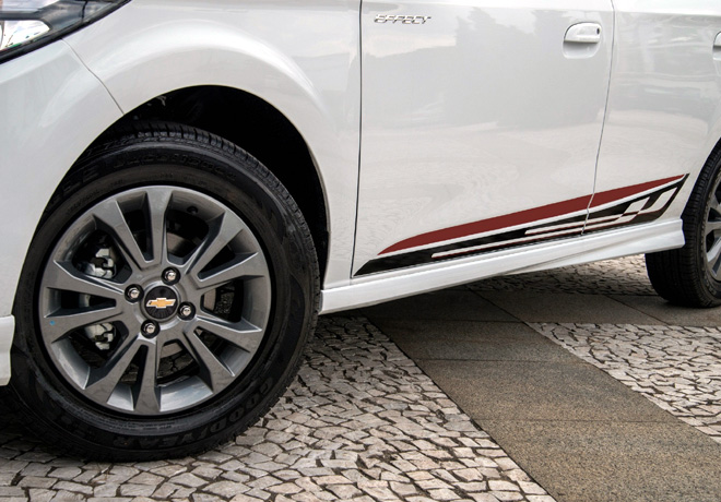 El Chevrolet Onix Effect se destaca al incorporar un equipamiento adicional a la versión LTZ. Posee una parrilla diferenciada y faros con máscara de color, faros antiniebla, techo negro brillante, llantas de 15 pulgadas en tono grafito, spoiler delantero, laterales y alerón trasero deportivo, faldones laterales y gráficas alusivas a la versión Effect en el capot, puertas laterales y portón trasero.