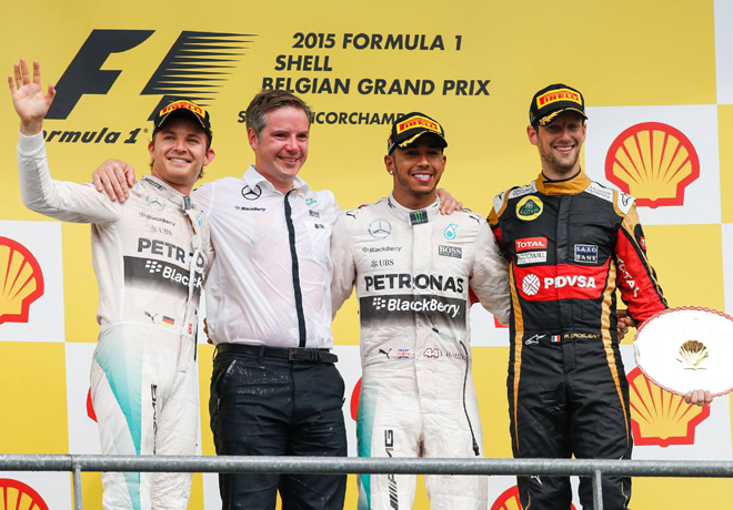 Nueva victoria de Lewis Hamilton -la sexta en esta temporada- con su Mercedes en el Gran Premio de Bélgica en el mÃtico circuito de Spa-Francorchamps. El triunfo del británico fue apabullante ya que no tuvo oposición de sus rivales, ni siquiera de su compañero de equipo Nico Rosberg, quien finalmente fue segundo. Tercero en su mejor actuación luego de mucho tiempo fue Romain Grosjean con el Lotus-Mercedes.