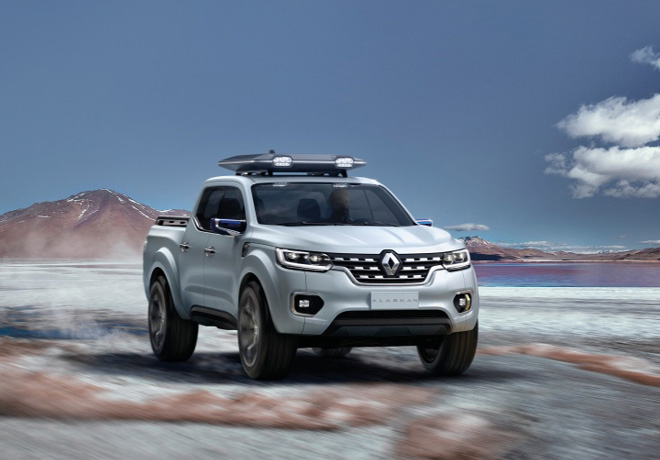 Después de introducir el Renault Duster Oroch este año, Renault está ahora presentando el Showcar Alaskan, que marca un paso adelante en su apuesta para ganar clientes en un mercado de pick-ups en constante crecimiento. Las ventas de pick-ups representan alrededor de un tercio de las ventas totales de LCVs (Vehículo Comercial Ligero) y abren un nuevo frente en la ofensiva de producción de Renault.