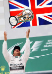 Hamilton superó a su compañero Nico Rosberg en la vuelta 49 de las 56 fijadas, aventajando al alemán por 2.8 segundos. Tercero arribó Sebastian Vettel, a 3.3”, después de haber iniciado la carrera desde la posición 15 por el cambio de motor de su Ferrari que lo penalizó con 10 posiciones.