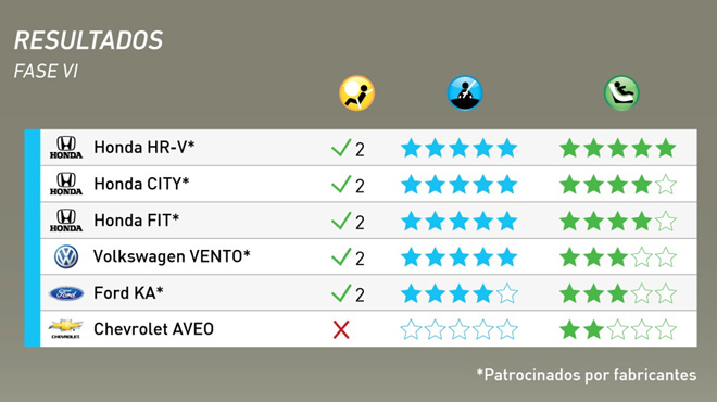 Honda logra cinco estrellas para tres modelos, mientras Chevrolet continúa decepcionando con cero estrellas en un modelo muy popular en ventas.
