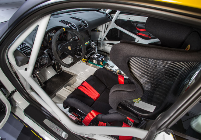 La versión de carreras viene equipada exclusivamente con una modificada caja de cambios de doble embrague PDK de seis marchas con levas en el volante y un diferencial de bloqueo mecánico en el eje trasero especialmente diseñado para el automovilismo deportivo.