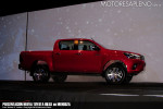 En la vista lateral, se destaca la postura y elegancia a través de la musculatura de sus guardabarros extendidos, que se fusionan con el resto de la carrocería a través de un corte transversal enfatizado en la sección superior de las puertas y resaltando la línea dinámica que va desde la parte frontal hasta la trasera, integrando la caja al resto del vehículo.