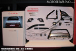 La vista frontal se destaca por el contraste de su gran paragolpes y su fina parrilla que tiene líneas de continuidad con los faros frontales. Su postura firme se enfatiza a través de sus guardabarros extendidos, que ahora son parte de la carrocería, así como el movimiento expresado desde ambos extremos de la parrilla superior que bajan por la toma de aire inferior en forma trapezoidal. Y para darle una apariencia más limpia, se reubicó el intercooler en la parte frontal del motor, mejorando su rendimiento y eliminando la toma de aire del capot.